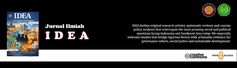 IDEA Journal is a peer-reviewed, open-access academic journal dedicated to advancing and disseminating cutting-edge knowledge in the field of sosiology and politic. The journal aims to serve as a platform for scholarly publication, promote high-quality research findings, support evidence-based theory and practice, and provide an academic forum for researchers, academics, professionals, teachers, and students to explore, share, and discuss critical ideas, strategic issues, innovations, implications, and scientific contributions in the field of sosiology and politics.